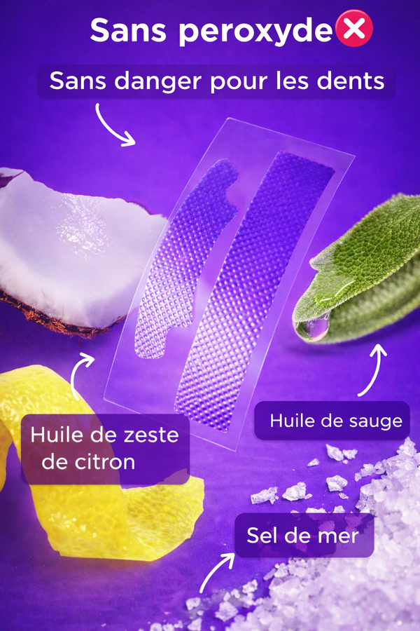 Nos bandes blanchissantes violettes ont été spécialement conçues pour raviver l’éclat naturel des dents, neutraliser les reflets jaunes et sublimer votre sourire au quotidien.